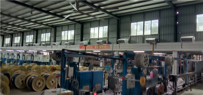 這個鋼構廠房降溫解決方案就是利用工業大吊扇,將福泰環保空調的送到廠房內的冷氣攪動起來,產生的立體自然微風吹在人體身上,就會讓人感覺到非常的舒適,而且在解決廠房降溫的同時,還能夠起到通風換氣的效果。這個降溫解決方案費用也非常低。通常一臺7.2米的工業大吊扇,會配4臺1.5KW的環??照{,覆蓋面積可以達到1000平方米,但是1個小時的耗電量卻僅為7.3度電。