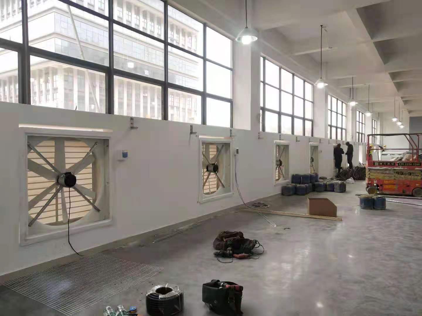 方法說明:在車間高溫悶熱區域的墻壁或窗戶上安裝負壓風機,強制將車間內的高溫悶熱空氣排到車間外,形成負壓態勢,迫使外部空氣涌入車間內對流換氣。